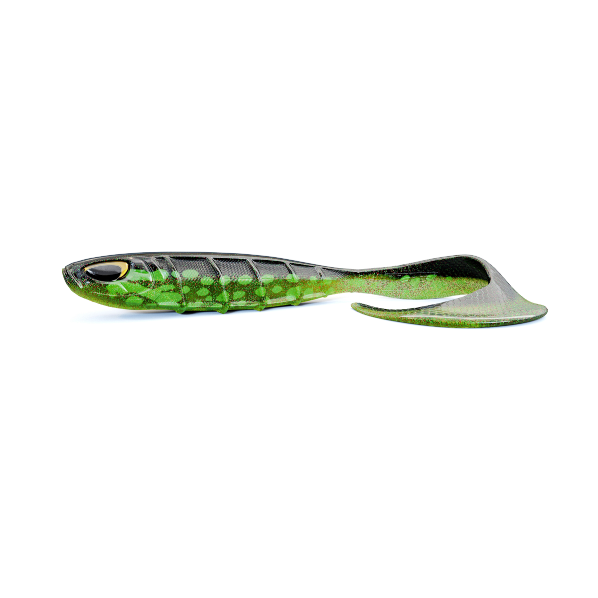 The GHST 120 model, the largest in the range (30 cm, 142 g), is specifically designed to target large pike. Its wide tail generates powerful vibrations, effective even in murky or shallow waters. It allows for a slow, extended swim within the fish’s field of vision. The smaller, more compact sizes are ideal for use with lighter rods and in smaller environments. It can also be used with a "shallow" rig behind a Miuras.