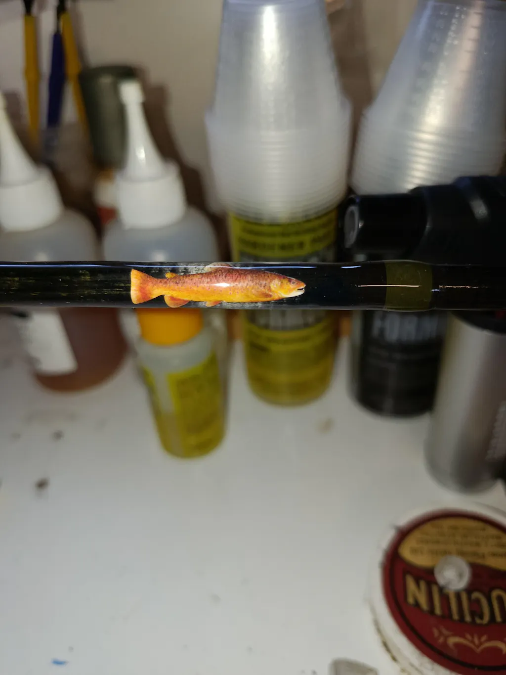 Il y a juste un coup à prendre au début mais une fois ce cap passé c’est diaboliquement simple d’utilisation. Il faut penser à bien serrer la languette de ACM autour du blank. L’alignement se fait aussi simplement que sur une ligature classique. Attention à bien passer une couche de Color Preserver avant de vernis.