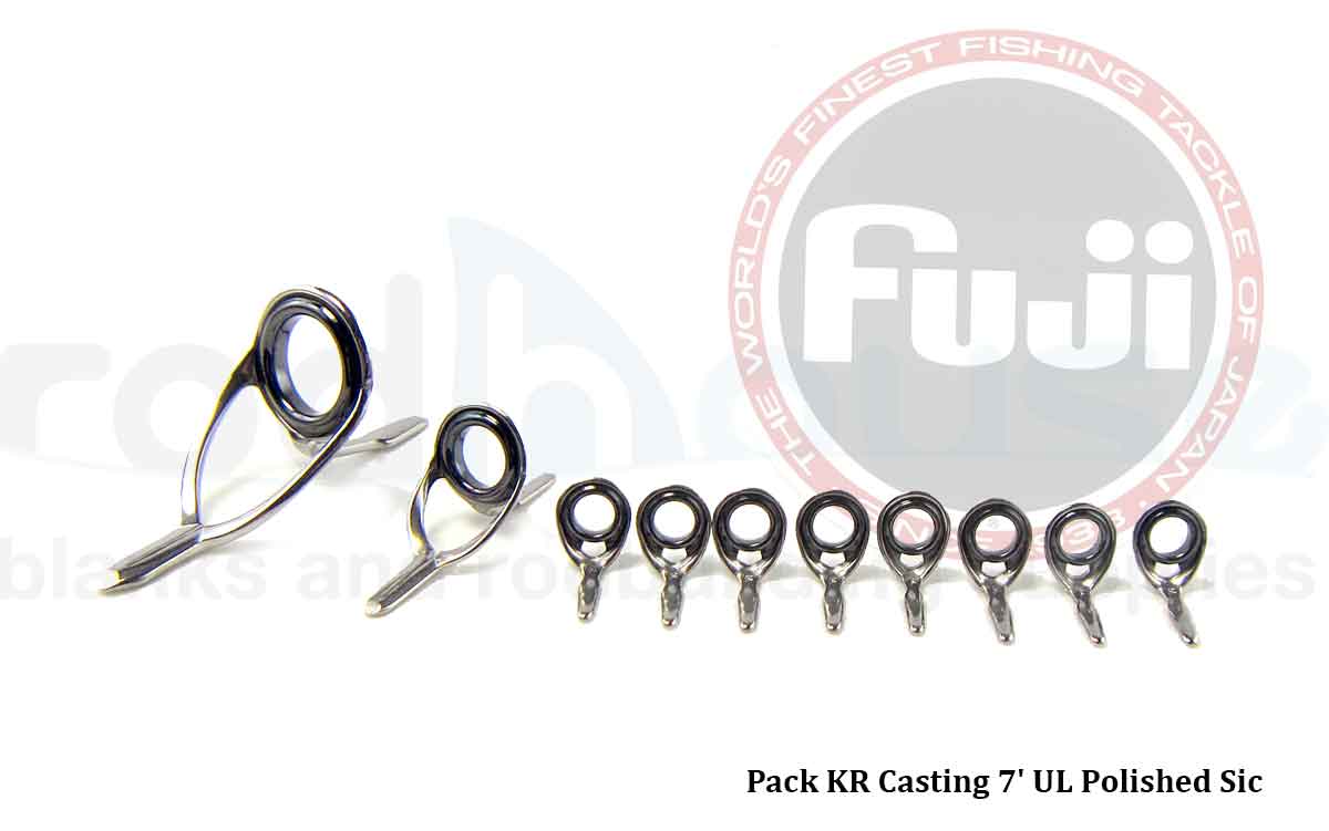 Pack d'anneaux Fuji destiné aux montages CASTING pour cannes UL disponible en finition Black Alconite, CC silver Alconite, CC Gunsmoke Sic, Polished Sic, Titanium Sic, Titanium Torzite